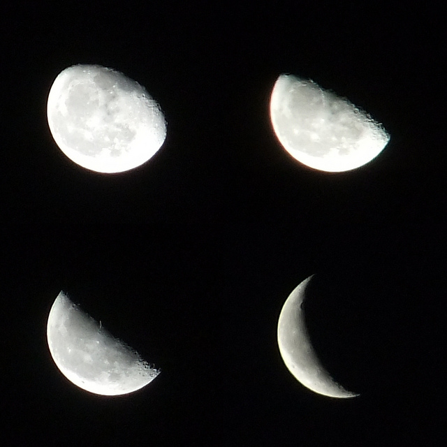 - Because moon and earth both are moving, there are times when we see moon fully (circle moon) while there are other times we see moon partially ( a crescent moon, a semicircle moon ). We call this “The Phases of the Moon”. These Phases are named as: New Moon, Crescent, First Quarter, Waxing Gibbous, Full Moon, Waning Gibbous, Last Quarter, Crescent, New Moon.