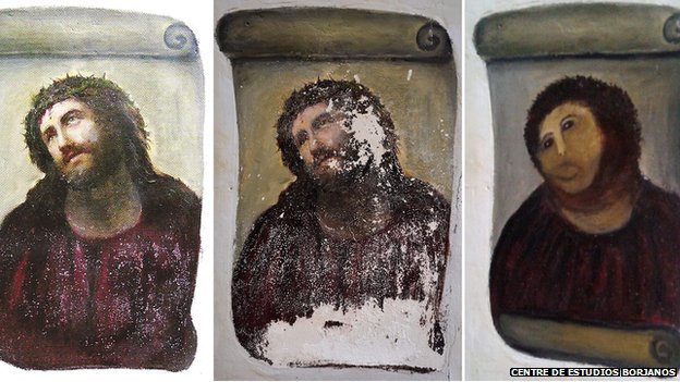 An elderly woman’s Do It Yourself has become a nightmare for a spanish church. The old lady decided to try and fix a famous painting of Jesus Christ after it was damaged by water.