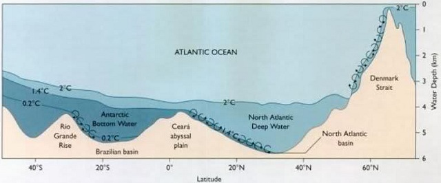 What is a cataract? It is the name we use to call a large powerful waterfall. Look at the picture below (taken from the book “Invitation to Oceanography” by Paul R. Pinet), the cataract is in the Atlantic ocean waters and falls off the high point in Denmark Strait on the right, falling into the North Atlantic Basin.