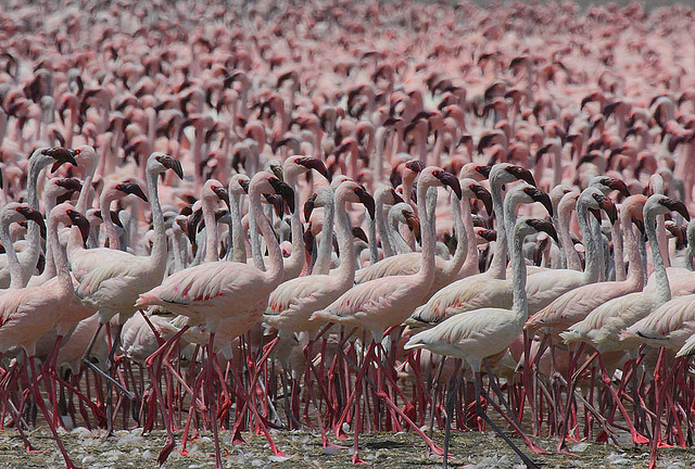 Millions of Lesser Flamingos have flooded Lake Bogoria like they do each year. Few thousands flamingos are a common sight in the lake all around the year but some times in the year millions of them flock the lake. Lake Bogoria looks breathtakingly beautiful with these beautiful light pink flamingos all over it. Lesser Flamingo is the smallest species of flamingo.