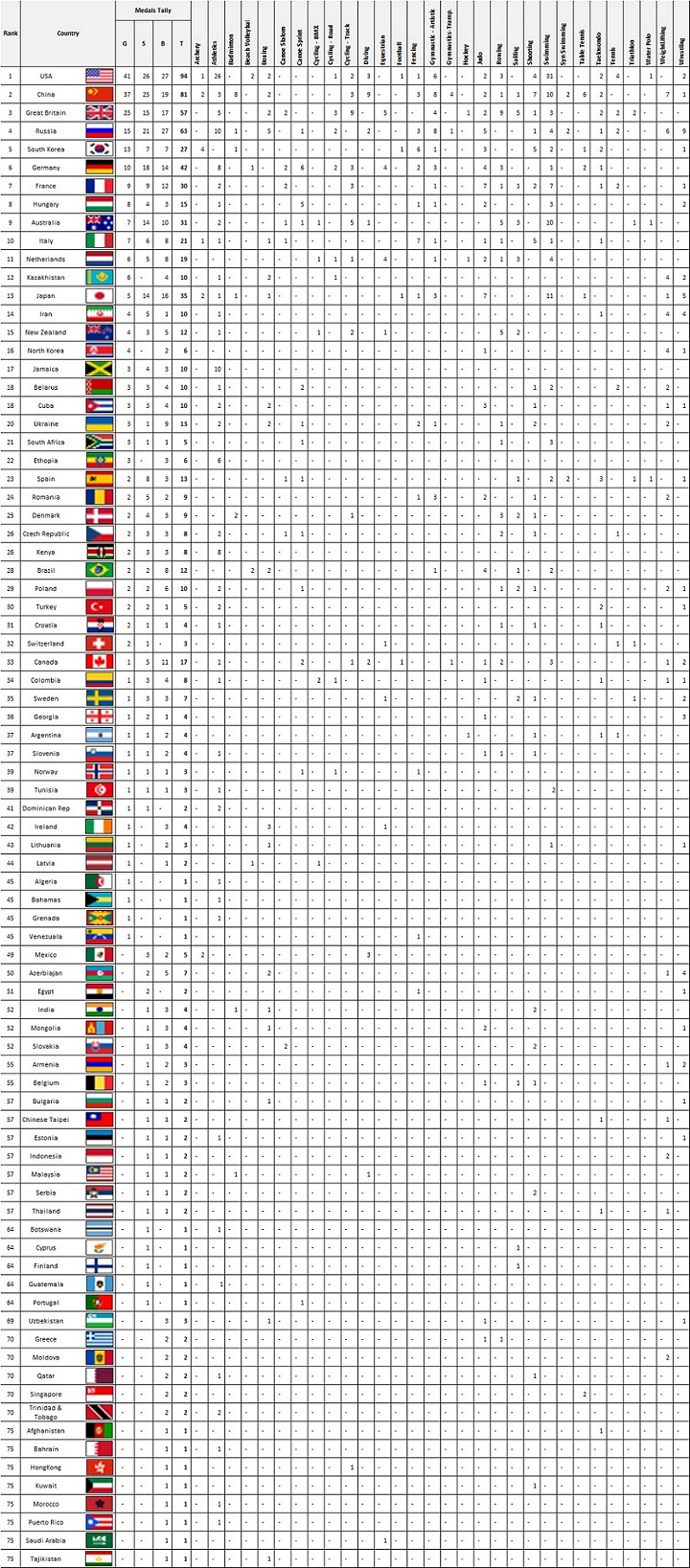 Given below is the Olympic Medal Tally of day 14: