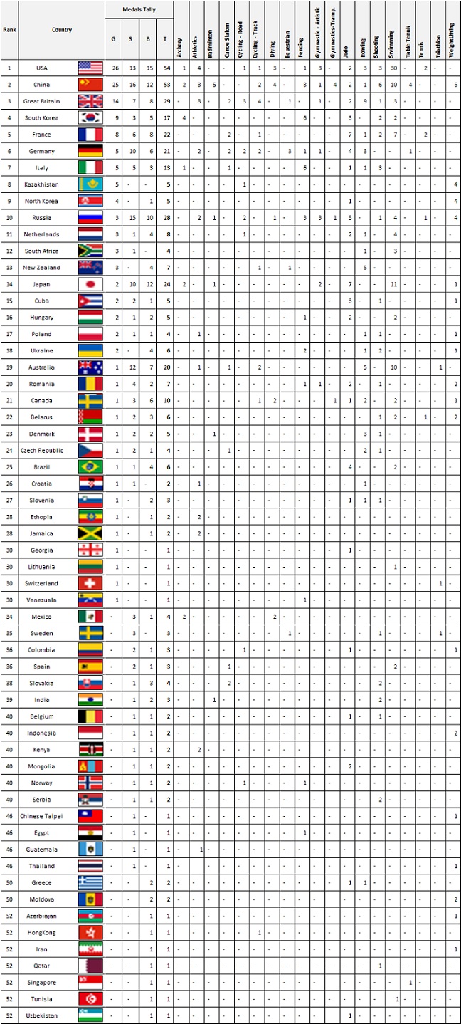 On Day 8 at the London Olympics, athletes participated in the very thrilling sport of Triathlon. Switzerland won the gold medal to make its entry into the medal tally table. US still remains at the top of the table with China coming a close second.