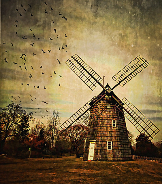 Like a paper fan, a windmill consists of a tall building, with sails at the top. Inside the building, you will find a machine that is connected to the sails and rotates with it. It is called a ‘mill’.