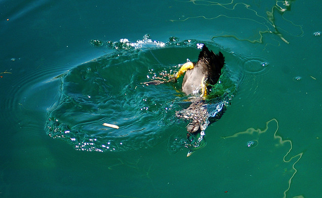 While the duck is busy poking its beak at the bottom of the pond for food, you will see its tail and the big webbed feet. They can eat insect, fish or water plants. They are very comfortable around water. They can live anywhere – near ponds, lakes or ocean.