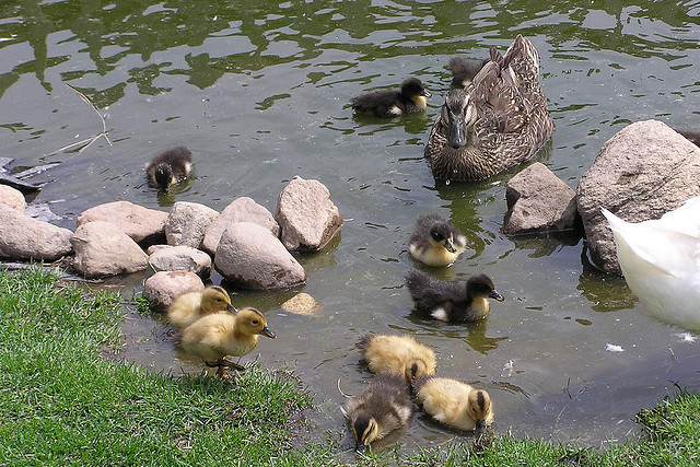 When the eggs hatch tiny ducklings that come out of it already know how to swim. No prizes for guessing where they go as soon as they hatch. They hit the water.
