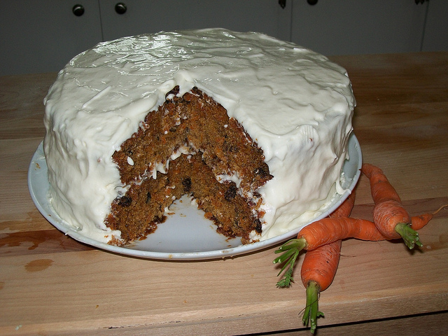 Mom probably raised an eyebrow but said nothing. Soon I was whipping cream, breaking eggs and grating carrots. By the time the oven tinged, I was covered in cake goo.