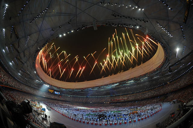 The grand finale of the ceremony is the entrance of the Olympic Flame into the stadium which is then passed on from one athlete to another athletes until it reaches the final torchbearer, who then ignites the Cauldron, marking the beginning of the games. The flame continues to burn for the entire period of the games.